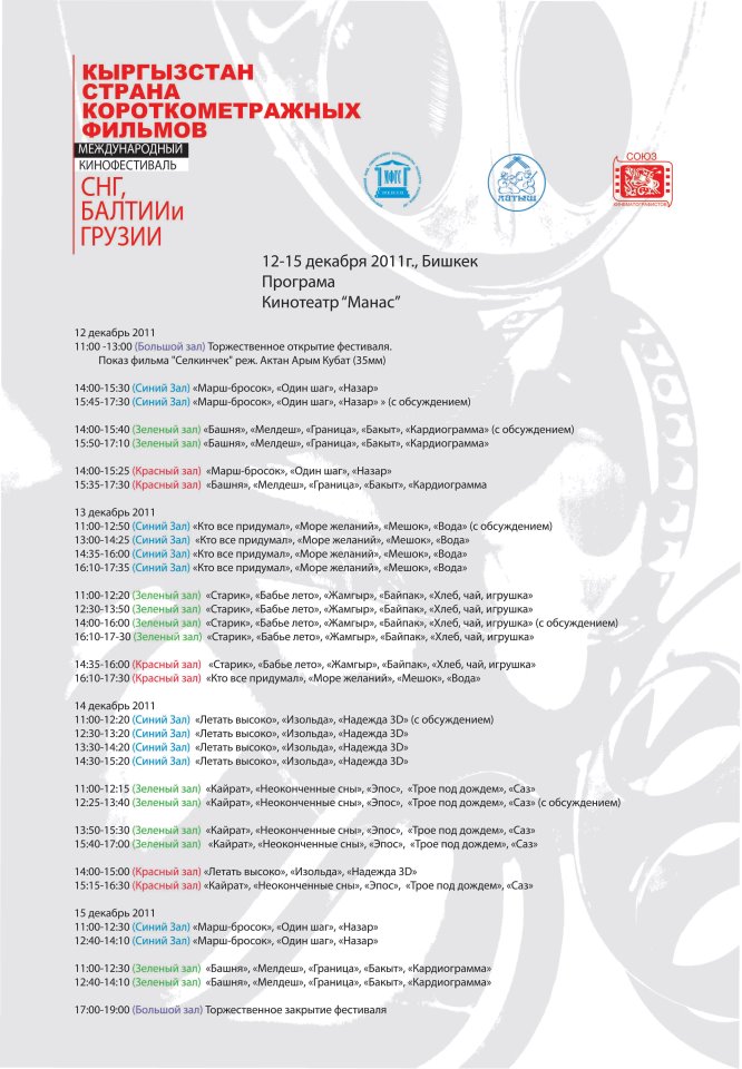 Сегодня, 12 декабря, начинается кинофестиваль «Кыргызстан — страна короткометражных фильмов», где будут показаны 25 различных картин, снятых режиссерами стран СНГ, Балтии и Грузии. Информационным партнером мероприятия выступил K-News.