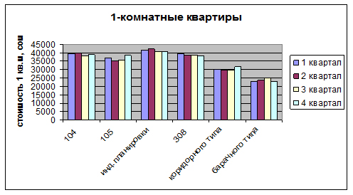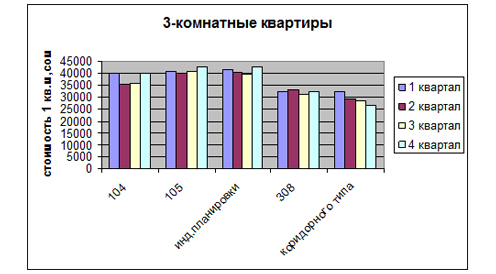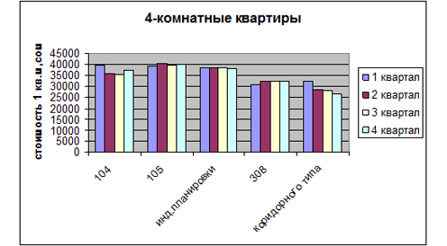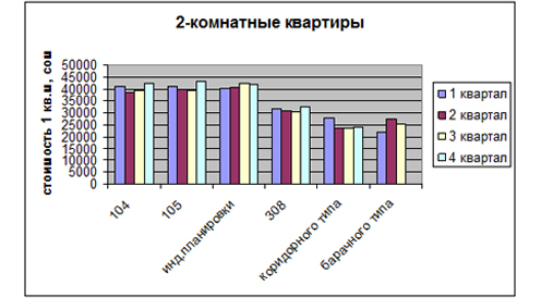 Вместе с тем, как отмечается, стоимость квартир 104, 105 и 308 серий, а также жилья индивидуальной планировки возрастала в 2011 году в первом, втором и четвертом кварталах. Цены на однокомнатные и двухкомнатные квартиры «коридорного» и «барачного» типов активнее всего росли в первом и во втором кварталах.
