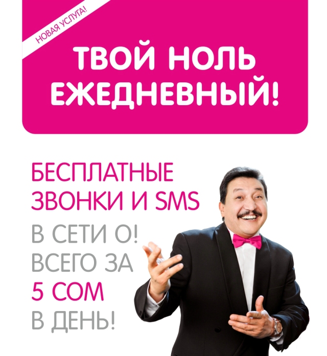 Учитывая популярность услуги «Твой ноль», сотовый оператор O! объявляет о запуске новой опции «Твой ноль ежедневный!», с которой каждый абонент O! может общаться бесплатно внутри сети всего за 5 сомов в день!
