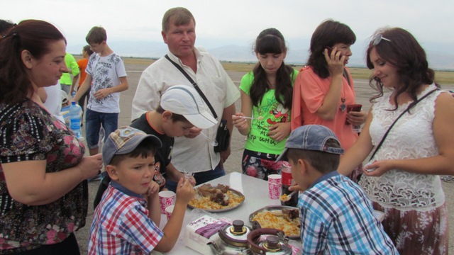 По традиции двери авиабазы в этот день были открыты для всех желающих, чем, не стесняясь, пользовались сотни любопытных гостей. Взрослые, дети и даже ветераны-летчики в буквальном смысле «штурмовали» кабинки пилотов вертолета МИ-8 МТВ и бронированных Су-25. Всем хотелось посидеть за штурвалом военной авиатехники, старикам — вспомнить прошлое, а молодым — запечатлеть на фотокамеры и телефоны настоящее.
