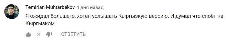 «Я ожидал большего, хотел услышать киргизскую версию», «Я тоже ждал перепев на киргизском языке. Думаю, эффект был бы намного более крутым», — написали некоторые комментаторы.