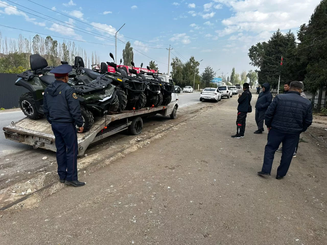 Региональное управление по г. Бишкек и Аламудунскому району Службы экологического и технического надзора совместно с представителями МВД остановили группу граждан, направлявшихся в горную местность на квадроциклах. С ними проведена разъяснительная работа о правилах экологической безопасности, сохранении природы и необходимости соблюдения законодательства. Материалы переданы в Службу обеспечения безопасности дорожного движения для принятия мер.
