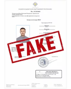 Национальный банк предупреждает об очередной схеме мошенников. Для убедительности демонстрируются поддельные документы с логотипом Национального банка и поддельной подписью заместителя председателя Национального банка КР.