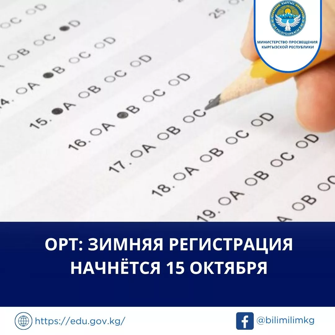 Регистрация на Общереспубликанское тестирование (ОРТ) для зимнего приёма в вузы Кыргызской Республики начнётся 15 октября, сообщает Минпросвещения.