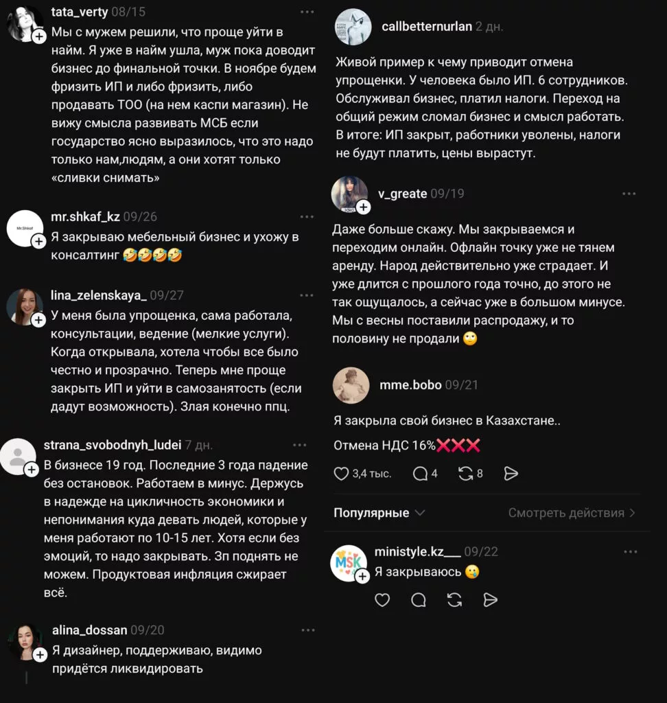 Справка «Каравана»: аналогичные поправки уже вносились в налоговый кодекс 30 лет назад, в апреле 1995 года. В результате с 1 апреля 1995 года по 1 сентября 1996 года в Казахстане закрылся почти миллион ИП и ТОО.