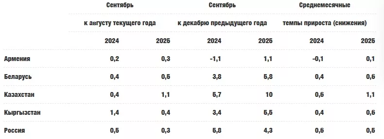 в государствах — членах ЕАЭС в сентябре 2025 года