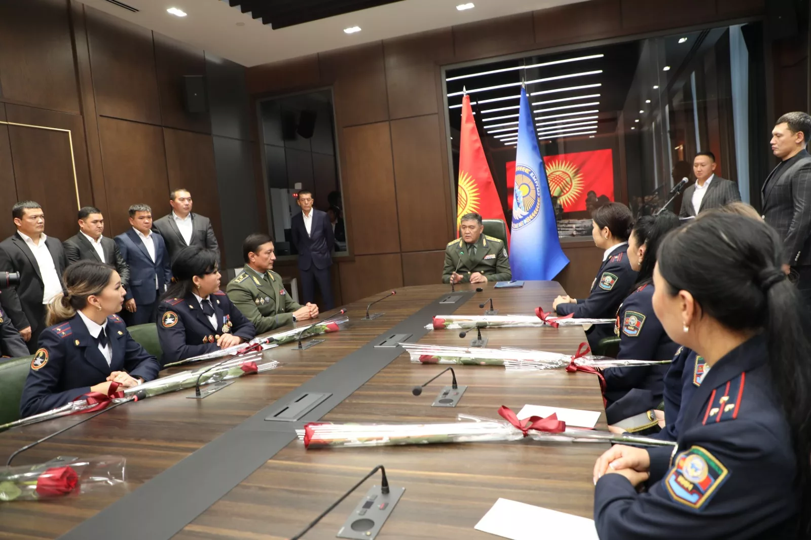 Председатель ГКНБ Кыргызстана Камчыбек Ташиев поздравил сотрудников милиции, долгие годы проработавших в органах внутренних дел, и всех женщин, работающих в этой сфере, с предстоящим 1 ноября профессиональным праздником органов внутренних дел страны.