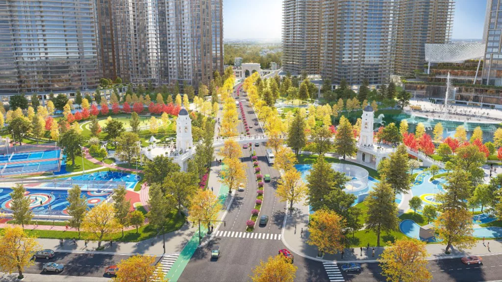 Royal Central Park включает более 24 000 квартир, торговые площади площадью 766 000 м², офисные здания, многоуровневые торговые центры, центральный парк площадью 10 гектаров, а также сеть школ, медицинских учреждений и зон отдыха. Более 70% территории отведено под зелёные насаждения, водные пространства и общественные зоны, обеспечивая баланс между природой и современностью — уникальное преимущество для Бишкека сегодня.