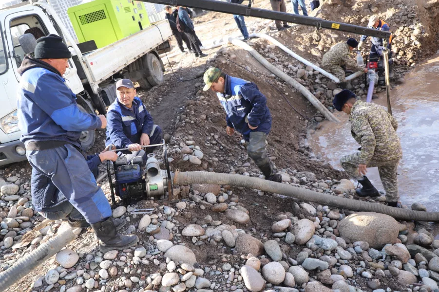 После получения сообщения об аварии сотрудники МП «Бишкекводоканал» и Октябрьского районного отдела Министерства чрезвычайных ситуаций Кыргызской Республики оперативно выехали на место и всю ночь проводили работы по устранению аварии.