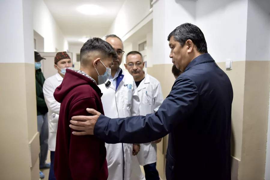После посещения места возгорания Айбек Джунушалиев навестил пострадавших, находящихся в больнице. Он поинтересовался их состоянием и сообщил, что необходимые документы для выделения средств из резервного фонда мэрии уже оформляются. Эти средства будут направлены на оказание материальной помощи семьям.