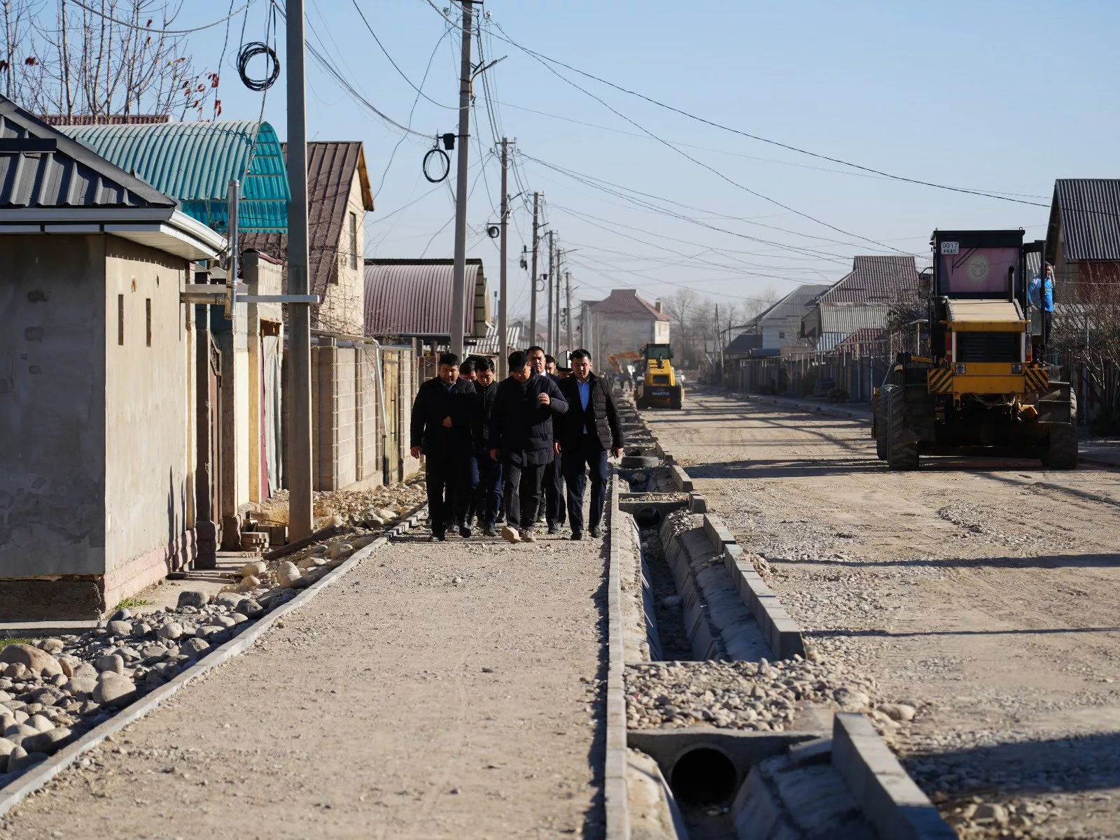 Далее Джунушалиев ознакомился с ходом строительства дороги по улице Чолпон — от ул. Долон Бий до ул. Тагай Бий. Длина нового дорожного участка составляет 670 метров, ширина проезжей части — 7 метров, по обеим сторонам предусмотрены тротуары шириной 2 метра. Уже установлены бордюры и водоотводные лотки, ведется подготовка основания под асфальтобетонное покрытие. Мэр поручил ускорить завершение работ и строго контролировать качество.