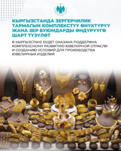 Президент Кыргызстана Садыр Жапаров подписал Указ «О мерах по поддержке отдельных отраслей экономики», направленный на комплексное развитие ювелирной промышленности и поддержку отечественных производителей ювелирных изделий.