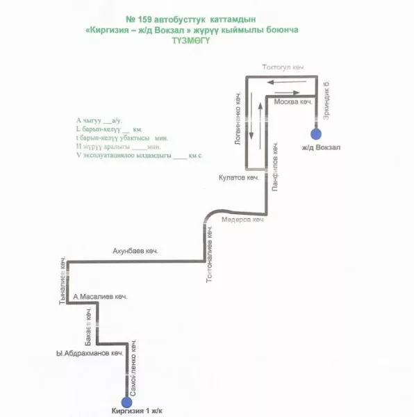 Маршрут № 159 будет следовать от жилмассива «Киргизия-1» до Железнодорожного вокзала в соответствии с утверждённой схемой движения.