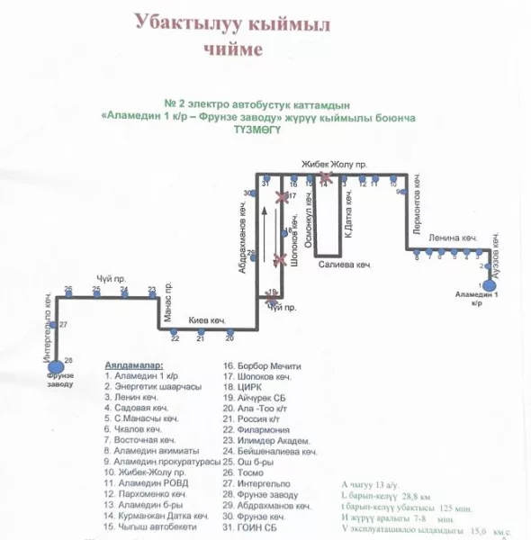 Отметим, что маршрут №2 будет курсировать от микрорайона Аламедин-1 до завода Фрунзе (улица Интергельпо).