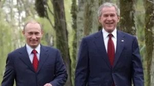 Джордж Буш был избран 43-м президентом США в 2000 году и принял присягу в январе 2001-го. В тот момент Путин тоже относительно недавно находился на посту президента: он победил на выборах в марте 2000 года.