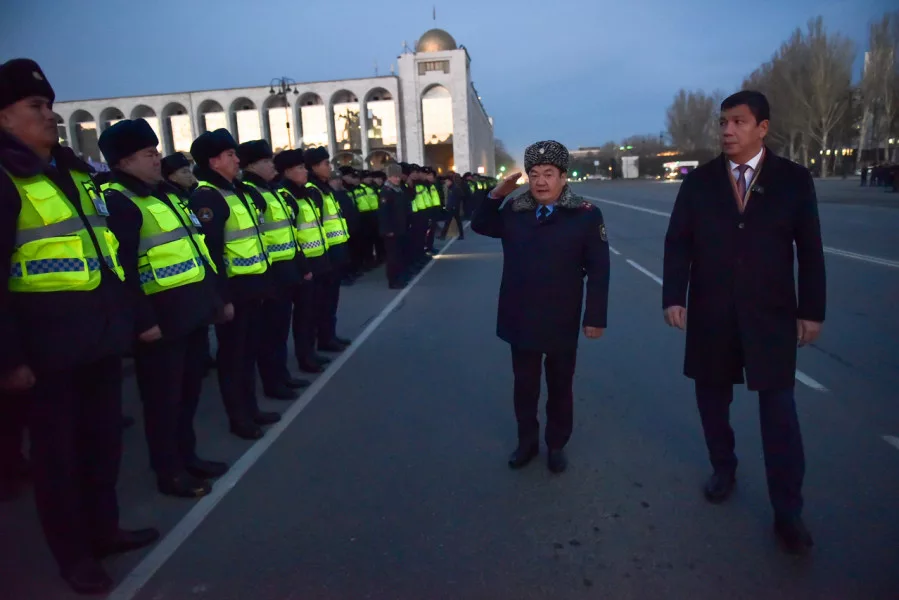 В преддверии новогодних праздников, на площади Ала-Тоо состоялось гарнизонное построение личного состава ГУВД города Бишкек, задействованного в охране общественного порядка и обеспечении безопасности граждан.