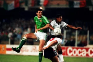 Следующим соперником “зеленой армии” стала Италия – именно ей досталась бронзовая награда того ЧМ. На то время команда переживала период “трофейного голода”, однако не переставала считаться одним из мировых гегемонов. Ирландия не собиралась легко сдаваться, поэтому упорно обороняла свои ворота и даже делала выпады в сторону оппонента. Однако все решил единственный гол Сальваторе Скиллачи на 38-й минуте – ирландцы покинули турнир с поражением 1:0 в шаге от полуфинала. На 1xBet ставь на авторов забитых мячей и время взятия ворот.