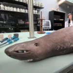 На популярном туристическом пляже Луарка на северо-западе Испании отдыхающие обнаружили необычное существо, напоминающее мифического дракона. Глубоководную акулу выбросило на берег, что стало настоящей неожиданностью, так как этот вид обычно обитает на глубине до 3500 метров. Найденная особь весила 18 килограммов, а длина ее тела составляла 1,45 метра, что привлекло внимание множества любопытных глаз.