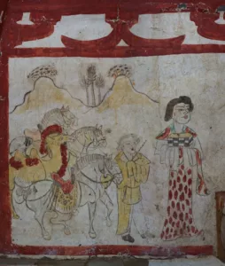 Среди других сцен — женщина в ярком платье, ведущая четырех лошадей, в то время как рядом стоит мужчина с кнутом; женщины и мужчины, держащие ящики или ритуальные чаши у груди; и старик, изображенный в разных сценах, тянущийся к змее, несущий топор и дрова, а также держащий чашу. На росписях также много деревьев, цветов, гор и домашнего скота. Большинство фигур в гробнице, по-видимому, изображают одних и тех же двух людей, что позволяет археологам предположить, что это были владельцы гробницы.