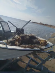 В ходе рейда из акватории озера Иссык-Куль изъято 500 метров старых синтетических рыболовных сетей китайского производства. С начала 2026 года всего изъято 3100 метров незаконно установленных сетей.
