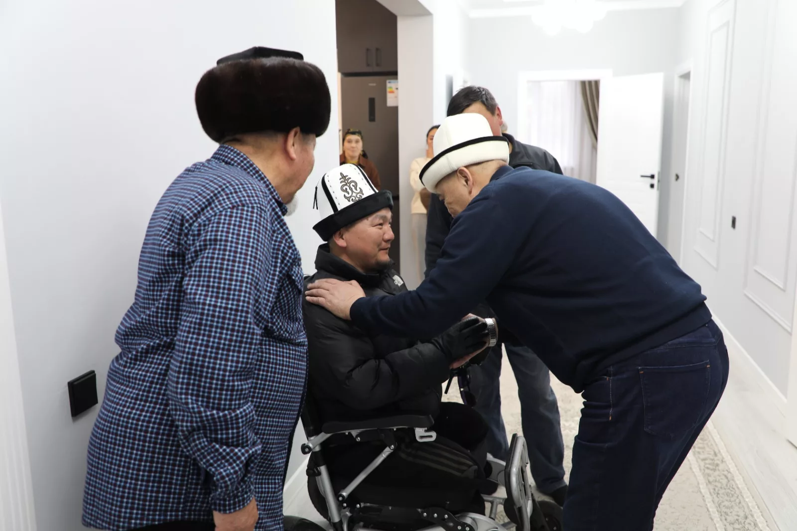 Председатель ГКНБ Камчыбек Ташиев посетил дом жителя села Исмаил Сокулукского района Азата Жусуева, 1982 года рождения.