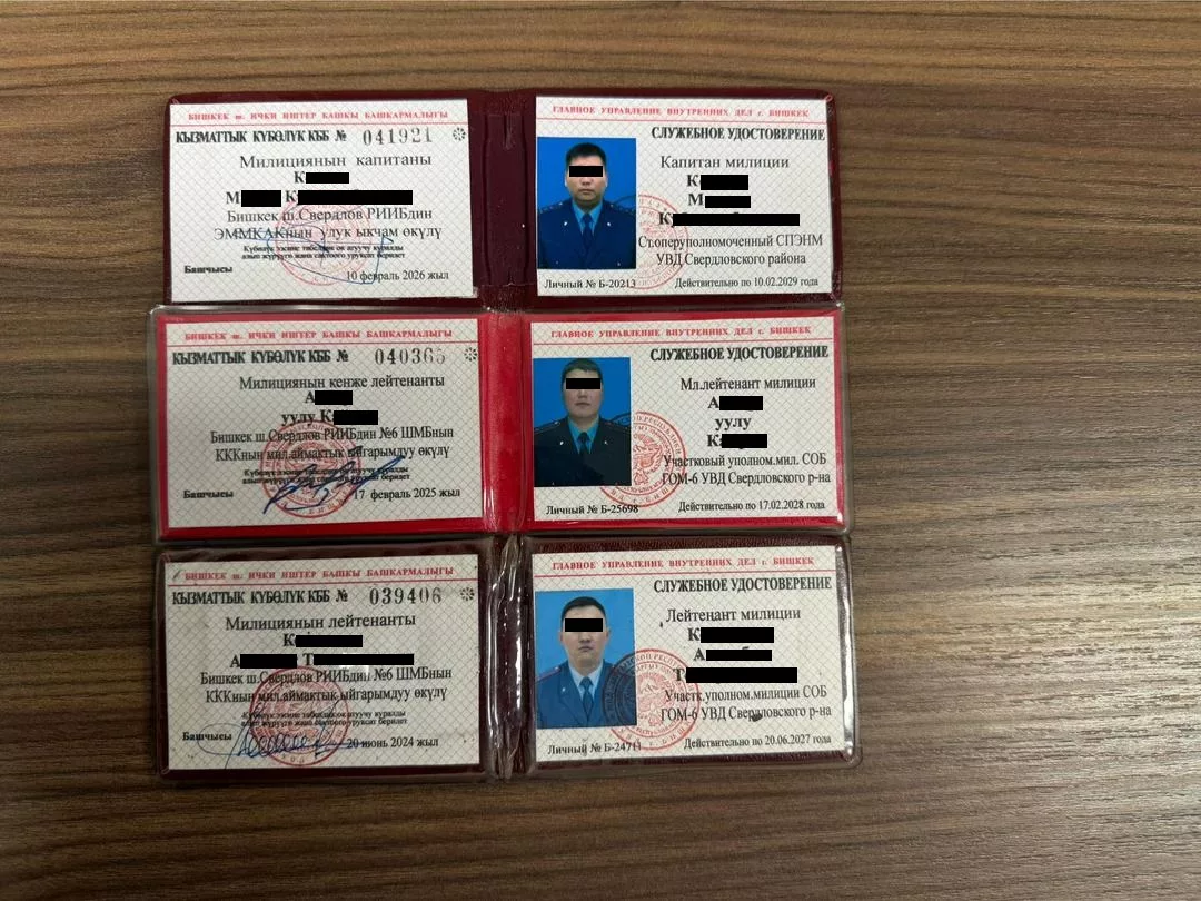 В рамках возбужденного ГКНБ Кыргызской Республики уголовного дела по признакам преступления, предусмотренного частью 3 статьи 378 Уголовного кодекса Кыргызской Республики (сокрытие другого преступления либо содействие его совершению), по фактам служебной халатности и подделки официальных документов сотрудниками Службы общественной безопасности (СОБ) Свердловского РУВД ГУВД г.Бишкек, задержаны трое сотрудников УВД Свердловского района младший лейтенант «А.у.К.», лейтенант милиции «К.А.Т.» и капитан милиции «К.М.К.».