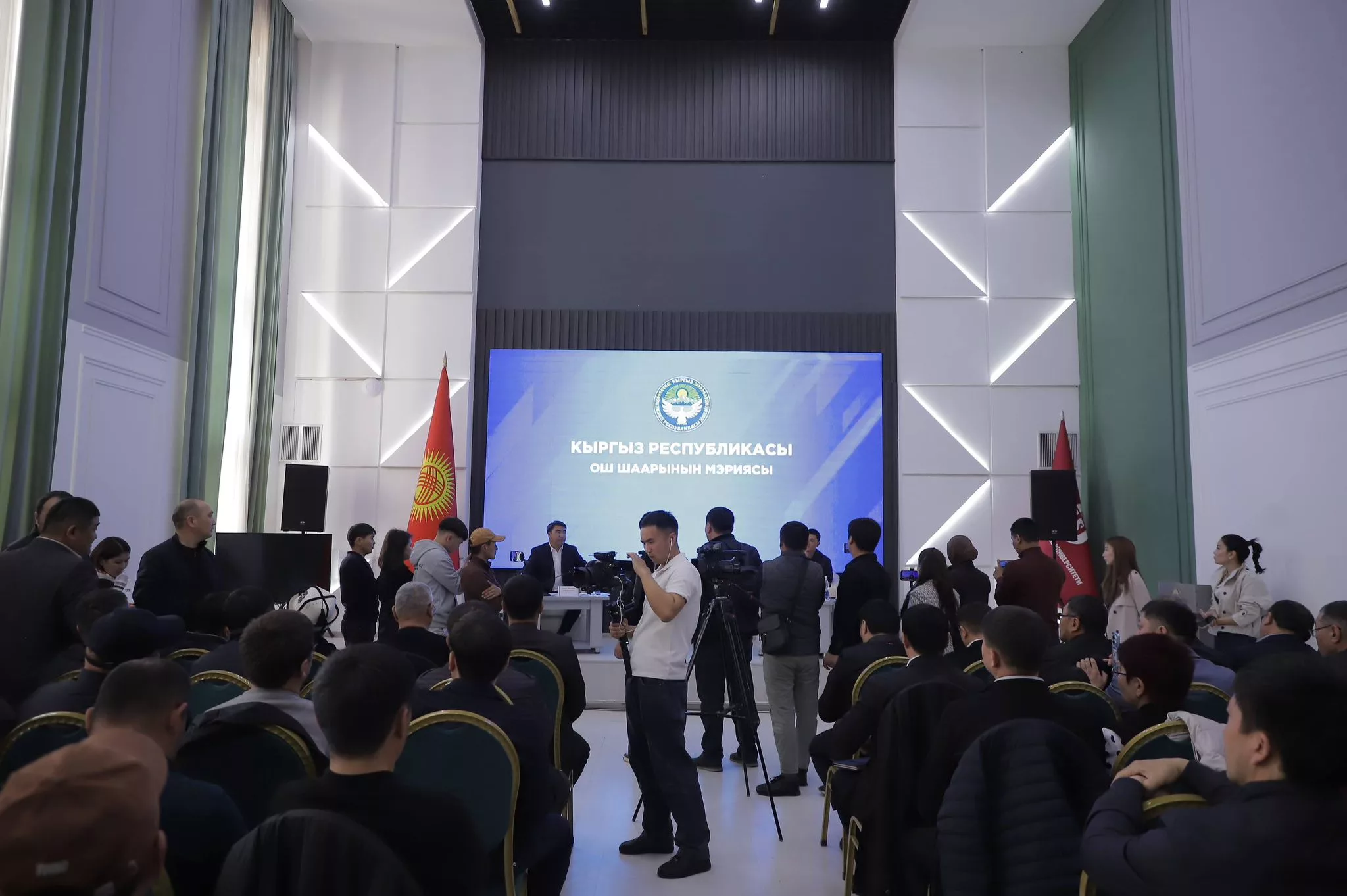Министр строительства, архитектуры и жилищно-коммунального хозяйства Кыргызстана Нурдан Орунтаев совместно с мэром города Ош Жанарбеком Акаевым провёл встречу с представителями частного строительного бизнеса.
