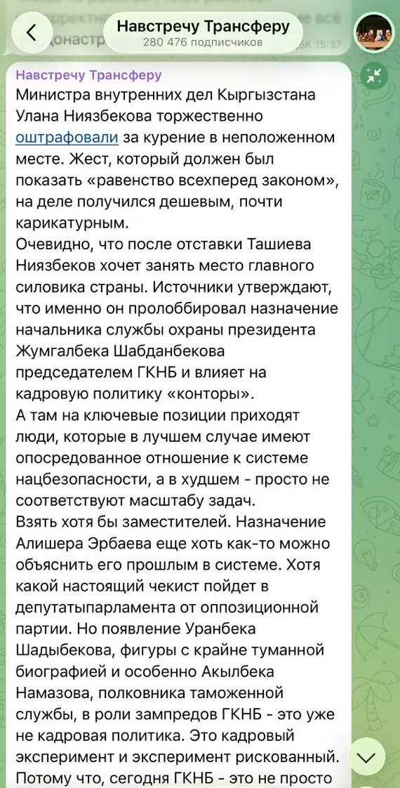 Государственный комитет национальной безопасности Кыргызской Республики подтверждает приверженность принципам открытости. Мы убеждены, что конструктивный и честный диалог возможен только на основе фактов, а не анонимных предположений.