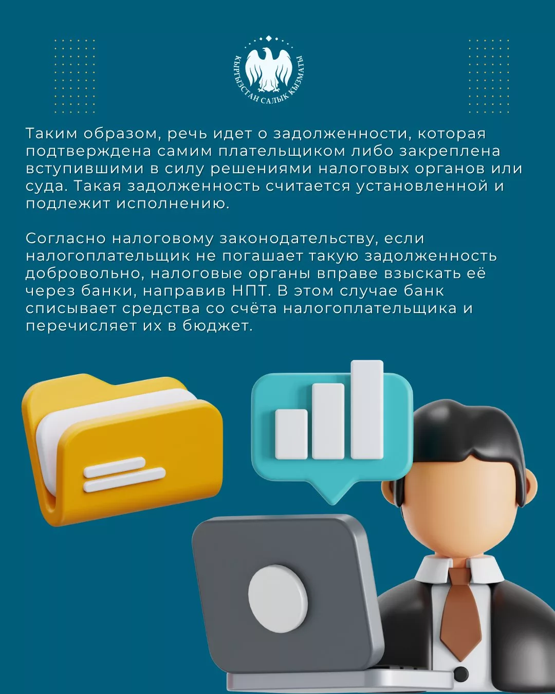 Списание задолженности путем выставления налогового платежного требования — это процедура, при которой налоговая служба через банк списывает с банковского счёта или электронного кошелька налогоплательщика суммы, признанные налоговой задолженностью и не оплаченные добровольно в установленный срок.