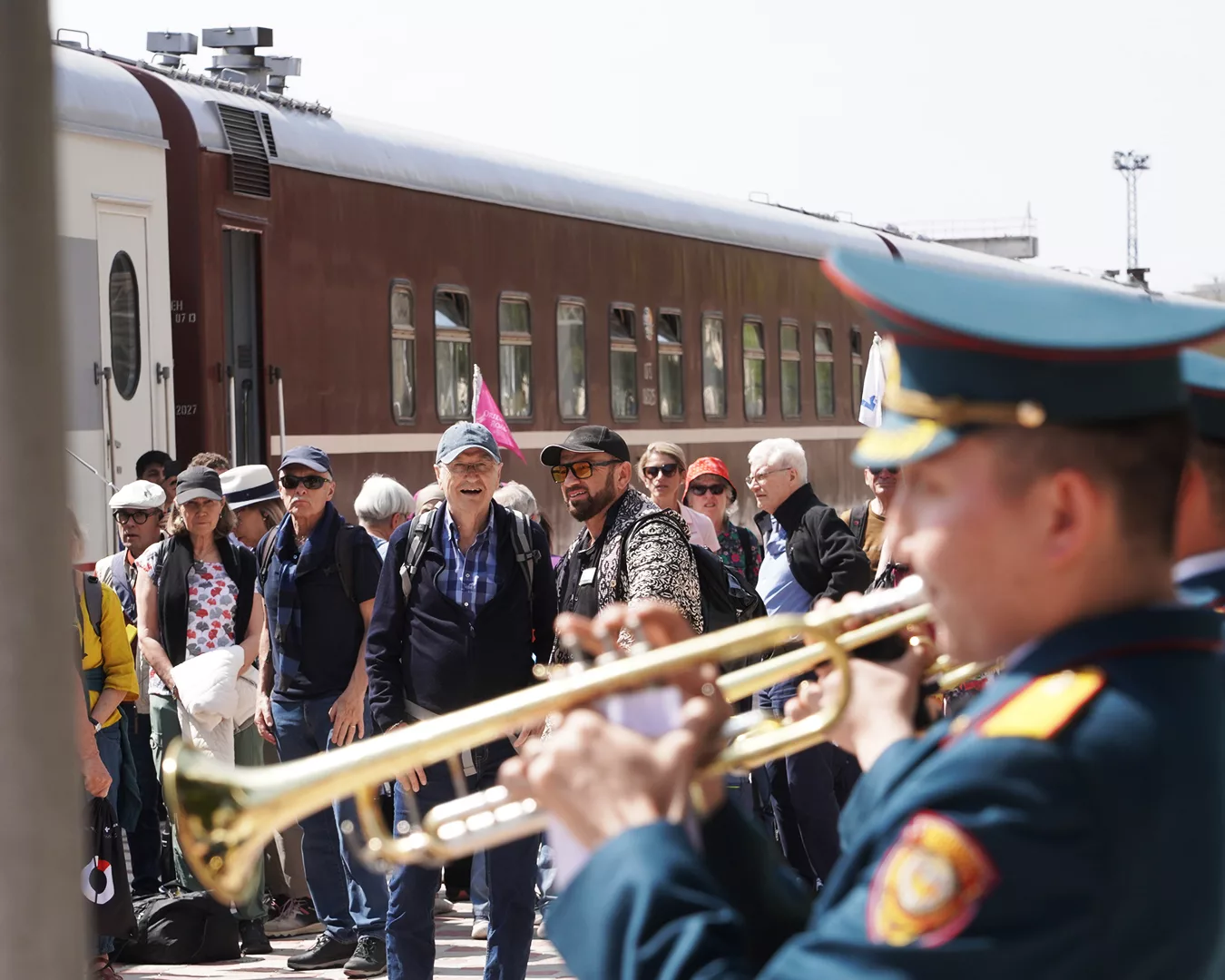 В составе поезда — 12 комфортабельных вагонов, в которых путешествуют более 60 туристов из стран Западной Европы, Северной Америки и Восточной Азии.