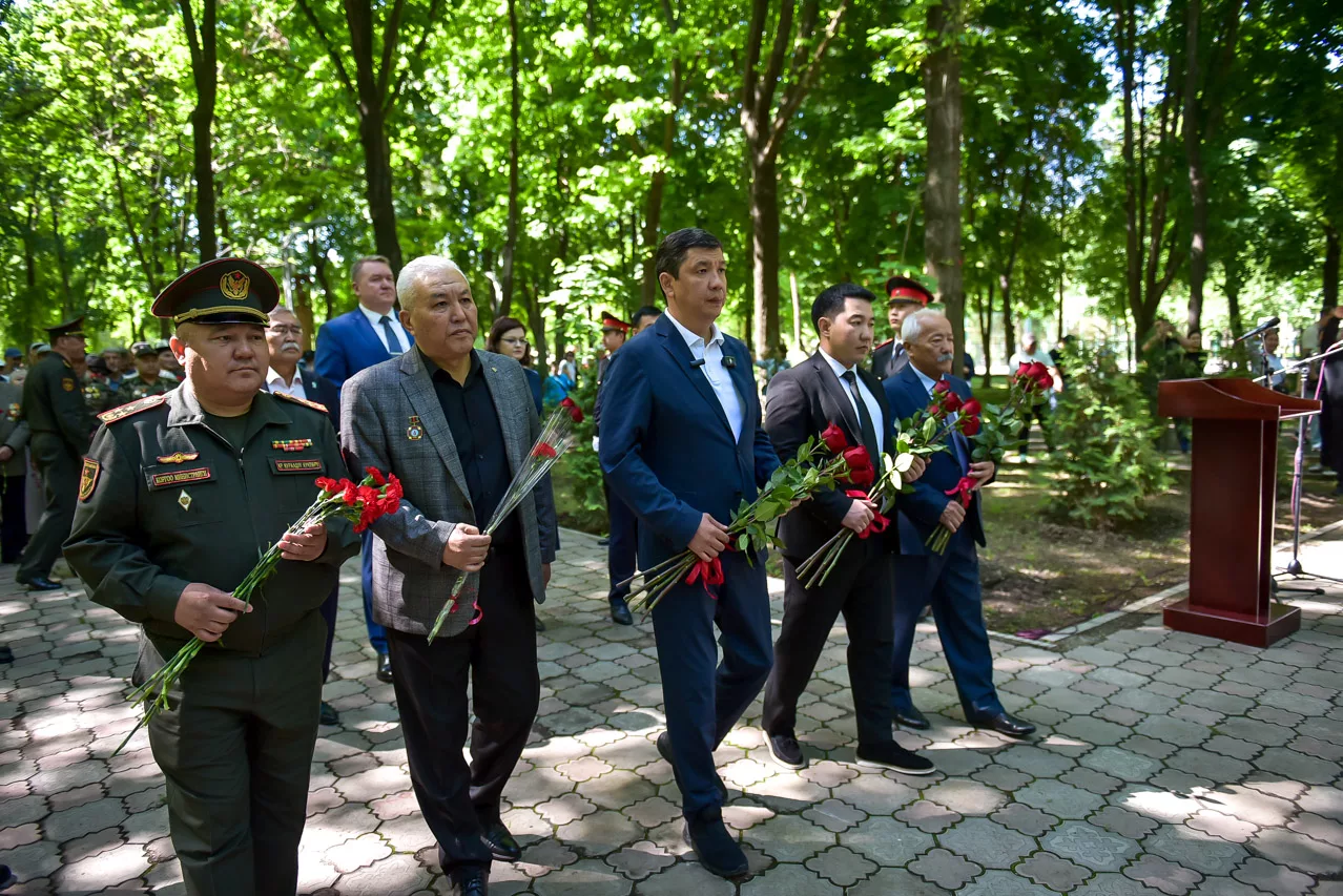 Церемония началась с торжественного возложения цветов к памятнику ликвидаторам под музыкальную композицию «Жалгыз аялдын үнү», после чего прозвучала минута молчания в память о погибших, а рота почетного караула