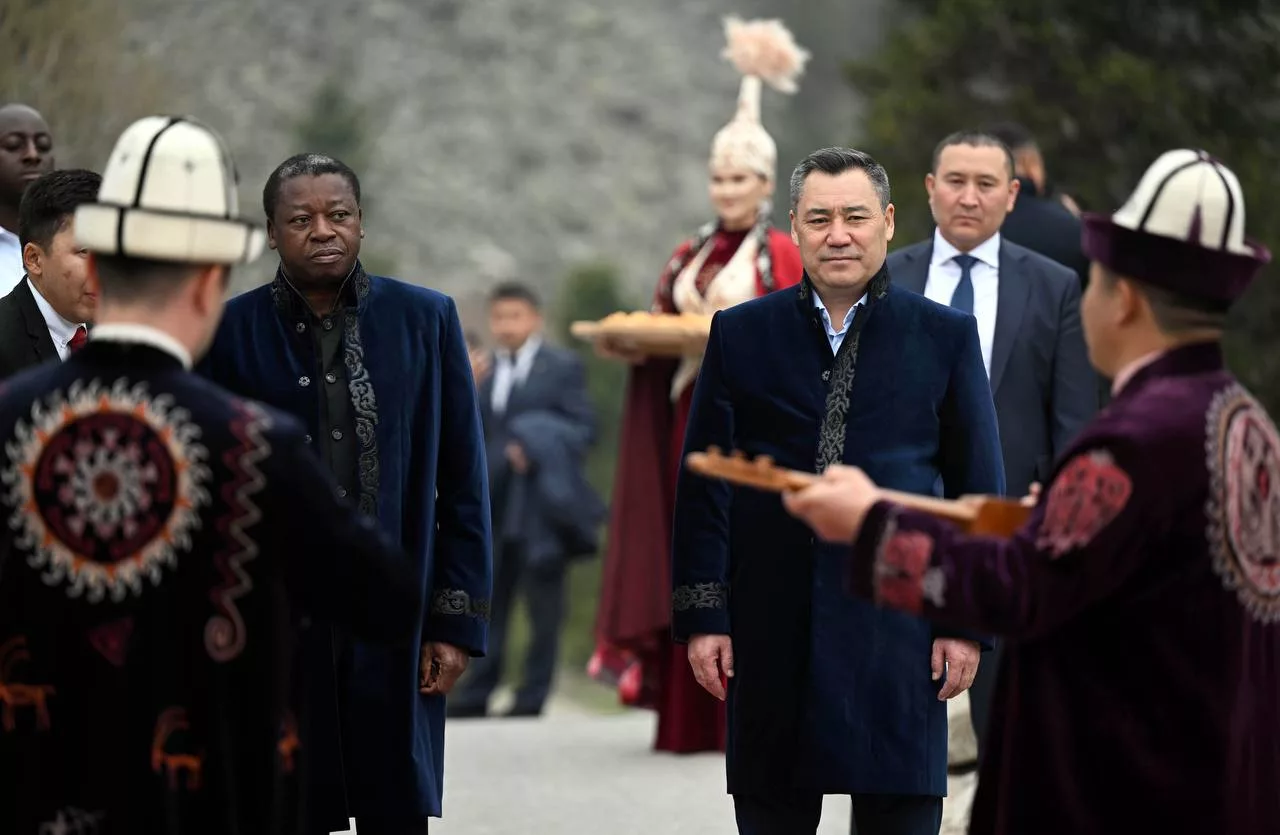 Президент Кыргызстана Садыр Жапаров и Председатель Совета министров Тоголезской Республики Фор Эссозимна Гнассингбе сегодня, 28 апреля, посетили этнокультурную программу, организованную в Государственном природном парке Ала-Арча.
